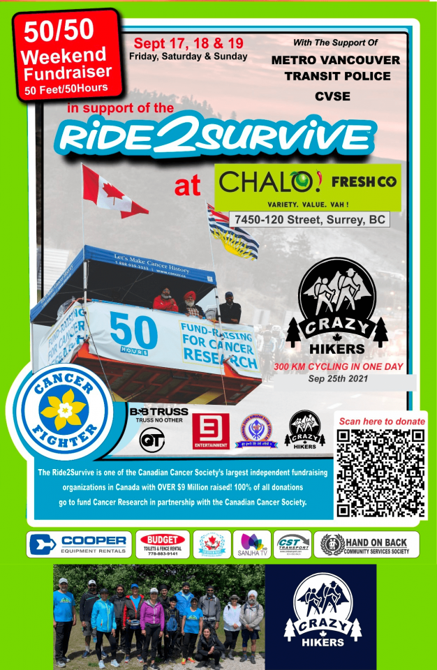 And on Sept 25th, Surinder Sahdra's Crazy Hikers are also riding 300km in ONE DAY to continue the fundraising!